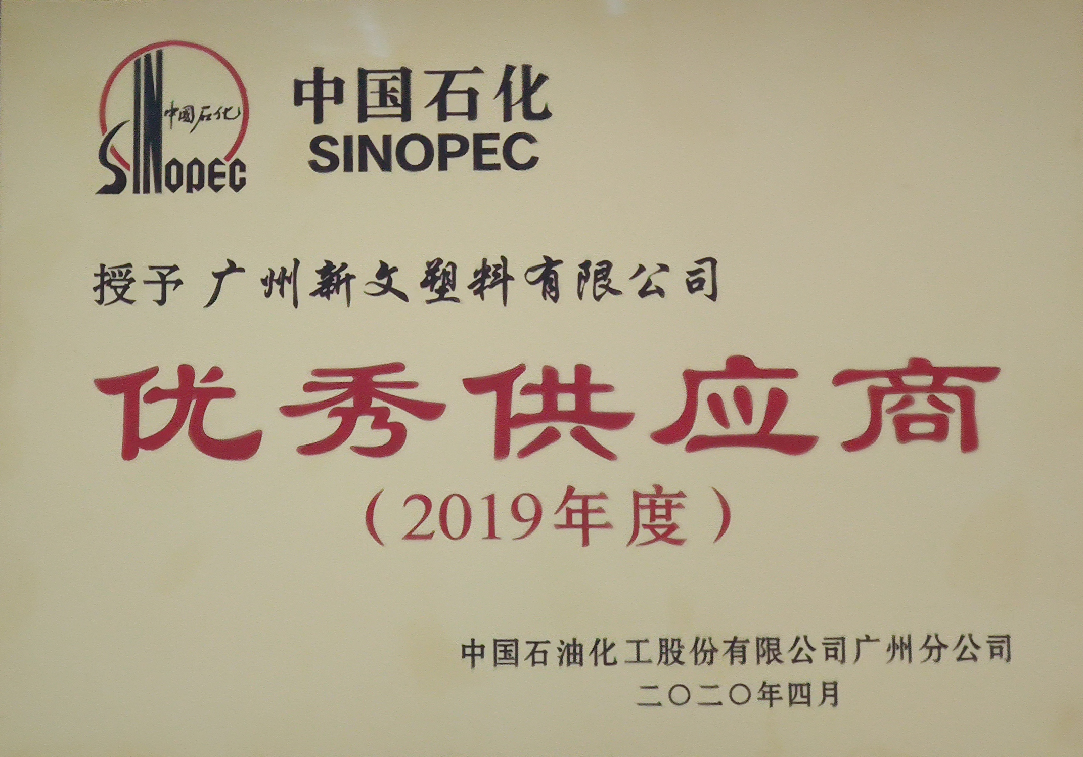 我司再次荣获中国石化2018年度优秀供应商。